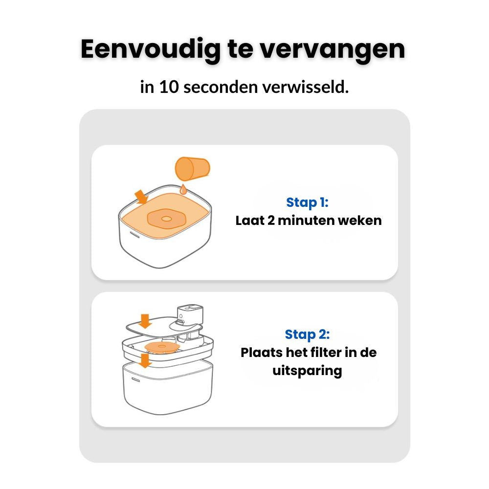 Herken je dit? Je huisdier drinkt te weinig. Het water ruikt muf. De fontein raakt verstopt door haren en kalkaanslag. Troebel water is niet alleen onaantrekkelijk – het kan ook schadelijk zijn. Bacteriën, chloor en zware metalen vormen een risico voor de nieren, blaas en algehele gezondheid van je kat of hond.